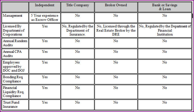 Hence the distinct advantage of using a bonded, licensed, independent escrow company to safeguard your funds